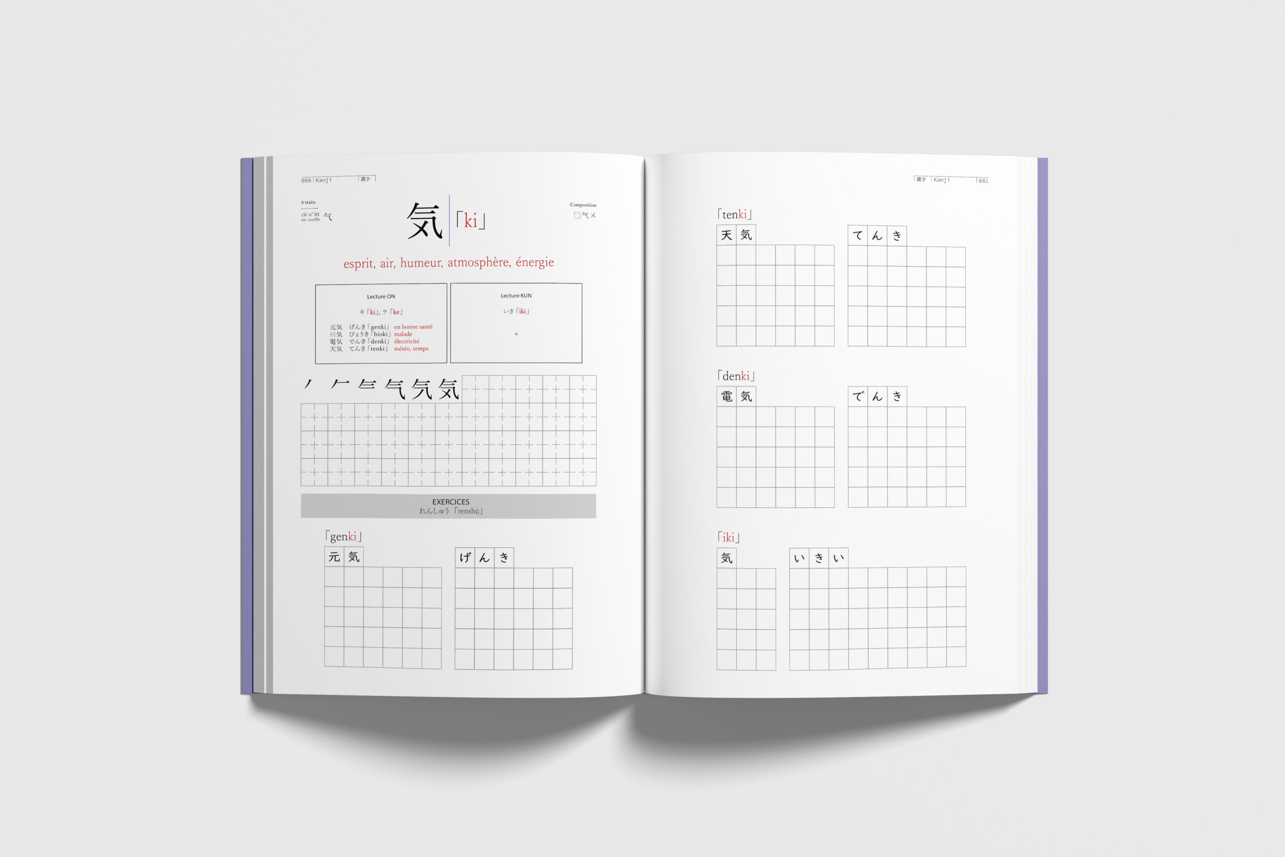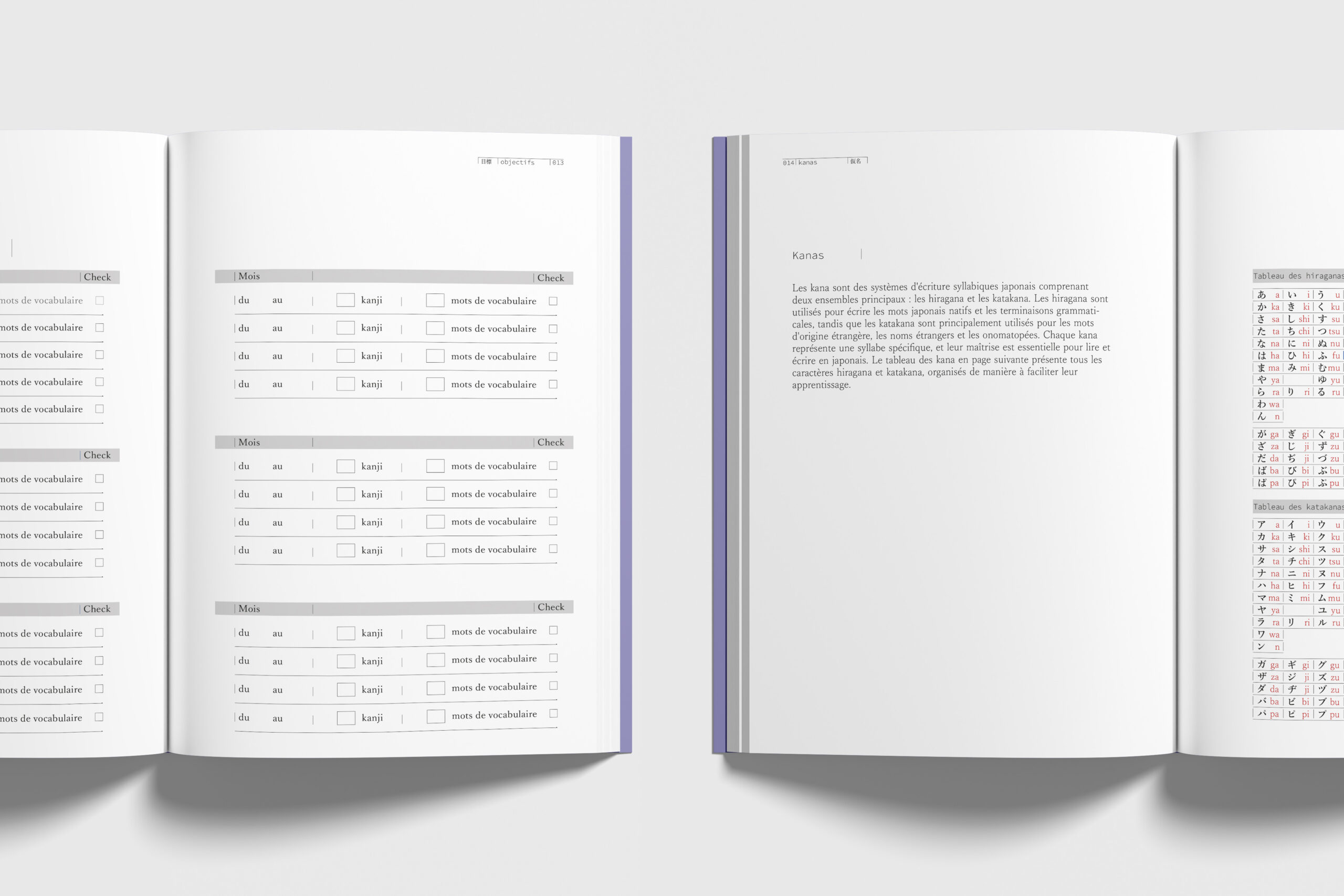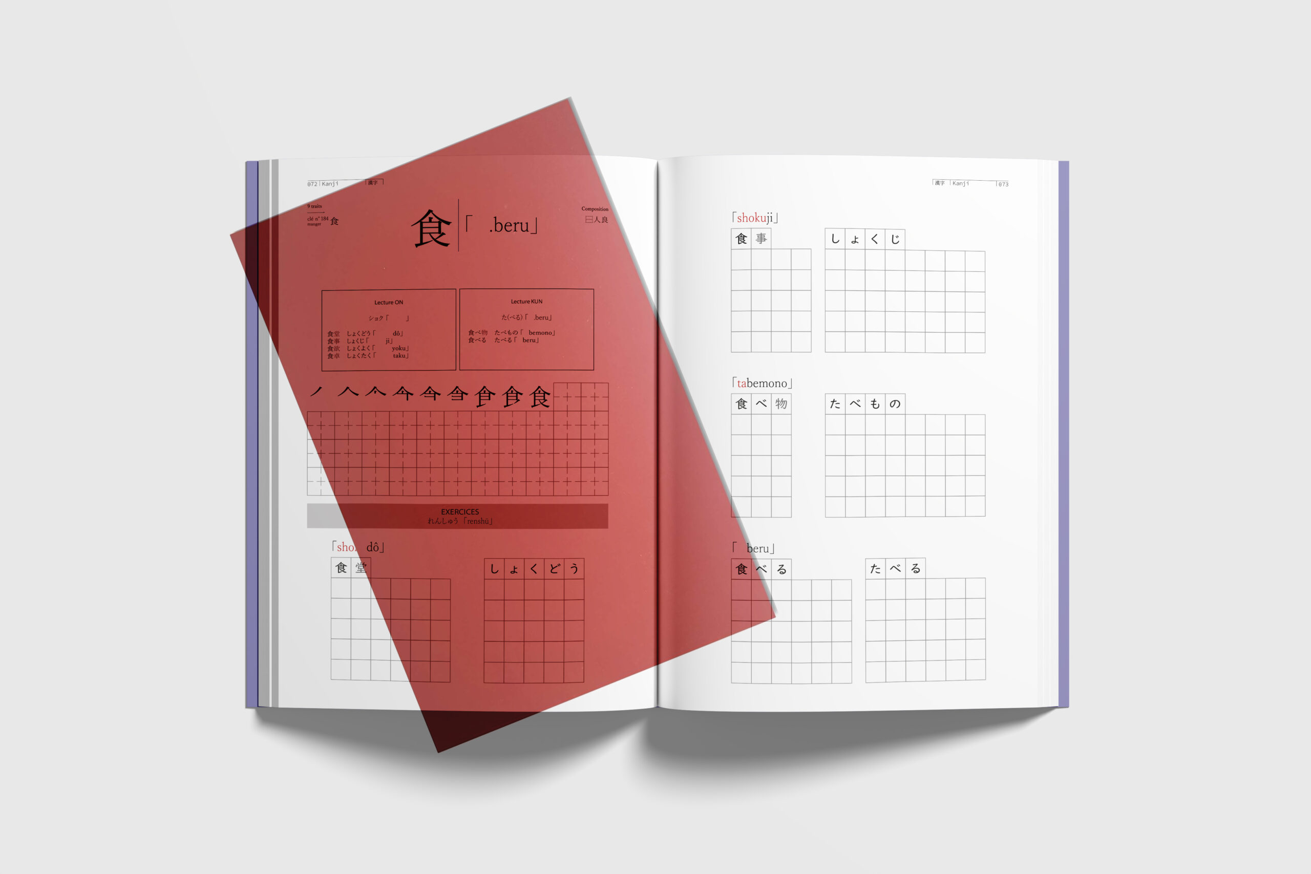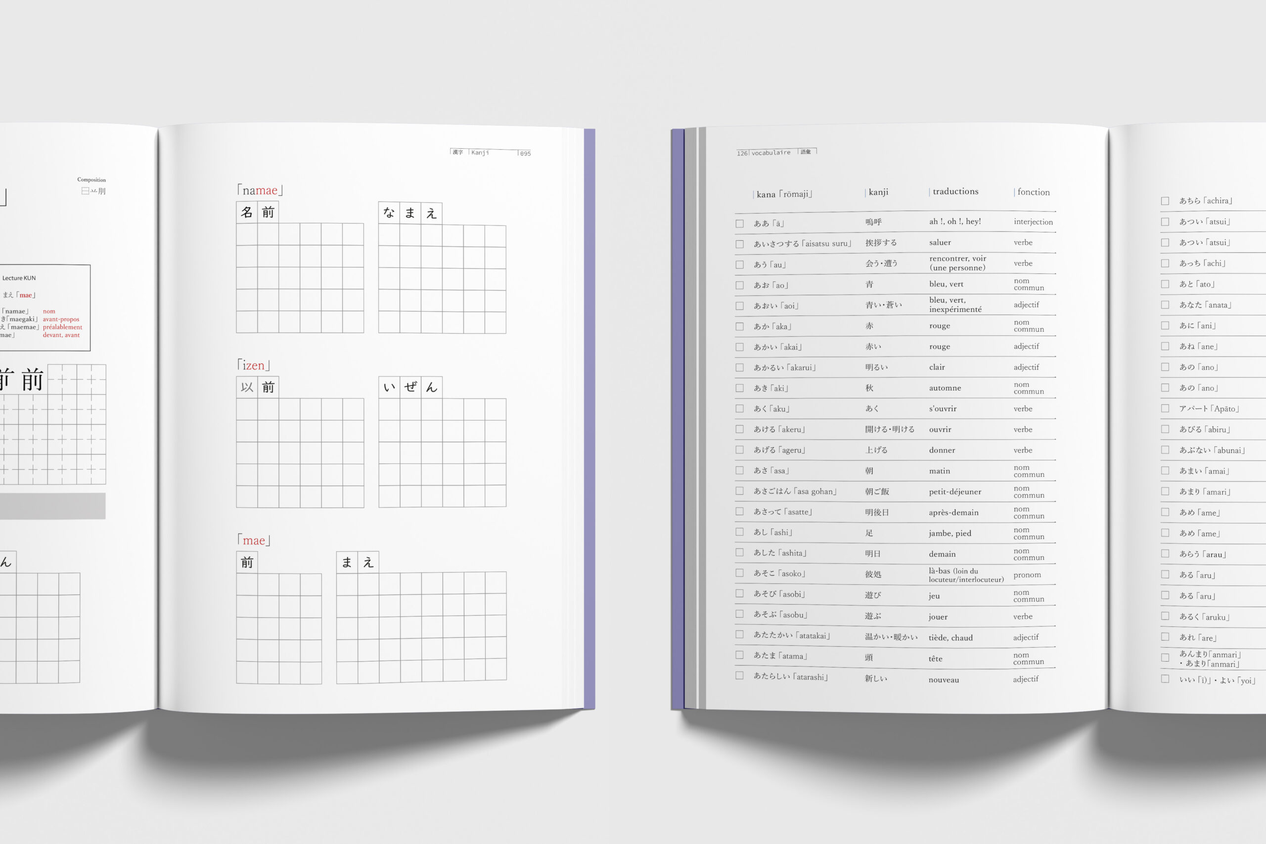 Le travail de direction artistique s’inscrit dans une recherche de qualité éditoriale, avec une attention portée à la conception d’un objet soigné, épuré et actuel. L’intégration d’un filtre rouge mobile, permettant de masquer ou de révéler certaines informations, introduit une dimension interactive et soutient la mémorisation active. Cette approche installe une perception sérieuse du contenu pédagogique, tout en positionnant la collection « Préparer le JLPT » dans un registre visuel proche du livre de référence.